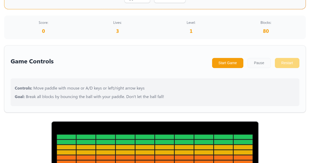 Bounce the ball off your paddle to destroy rows of bricks in this arcade staple. The Breakout game on FunnyFunHouse delivers satisfying brick-smashing gameplay with responsive paddle controls.