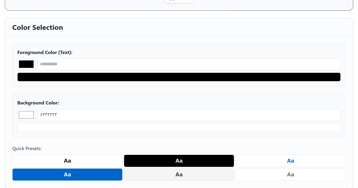 The Accessibility Contrast Checker on FunnyFunHouse is completely free, runs entirely in your browser, and requires no downloads or sign-ups. Check color contrast ratios for WCAG 2.1 accessibility compliance. Ensure your designs are readable for everyone including users with vision impairments