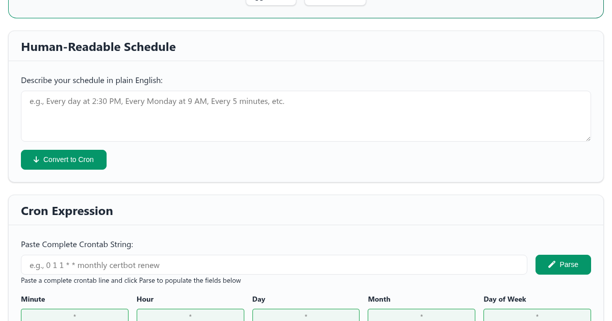 - Live preview - See upcoming execution times instantly