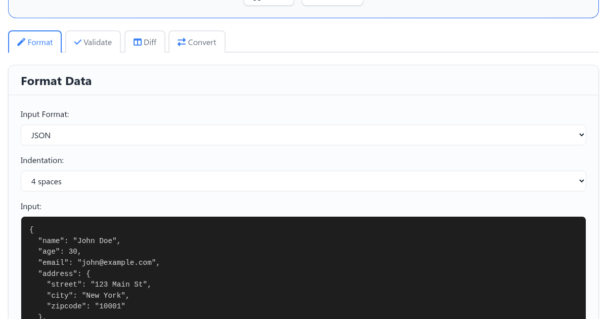 The JSON/YAML Tool is the Swiss army knife for working with structured data. Paste in messy JSON and get it beautifully formatted in one click. Need to convert JSON to YAML or the other way around? Done. The tool also validates your data and highlights syntax errors so you can spot problems before they break your application.