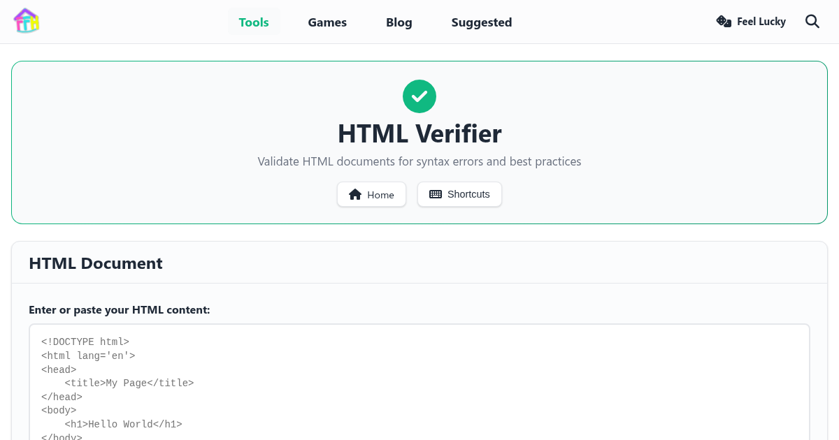 Writing valid HTML matters for accessibility, SEO, and cross-browser compatibility. The HTML Verifier analyzes your markup and reports issues like unclosed tags, missing attributes, deprecated elements, and nesting errors. Paste your code, click verify, and get a clear list of problems to fix.