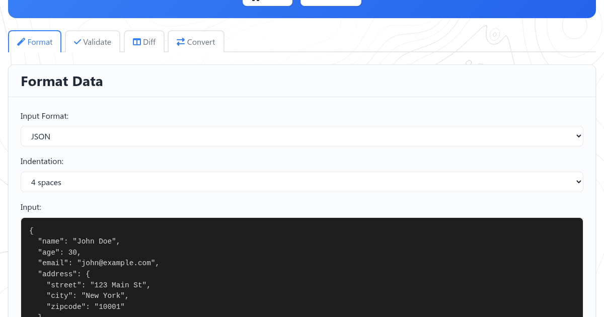 The JSON/YAML Tool is the Swiss army knife for working with structured data. Paste in messy JSON and get it beautifully formatted in one click. Need to convert JSON to YAML or the other way around? Done. The tool also validates your data and highlights syntax errors so you can spot problems before they break your application.