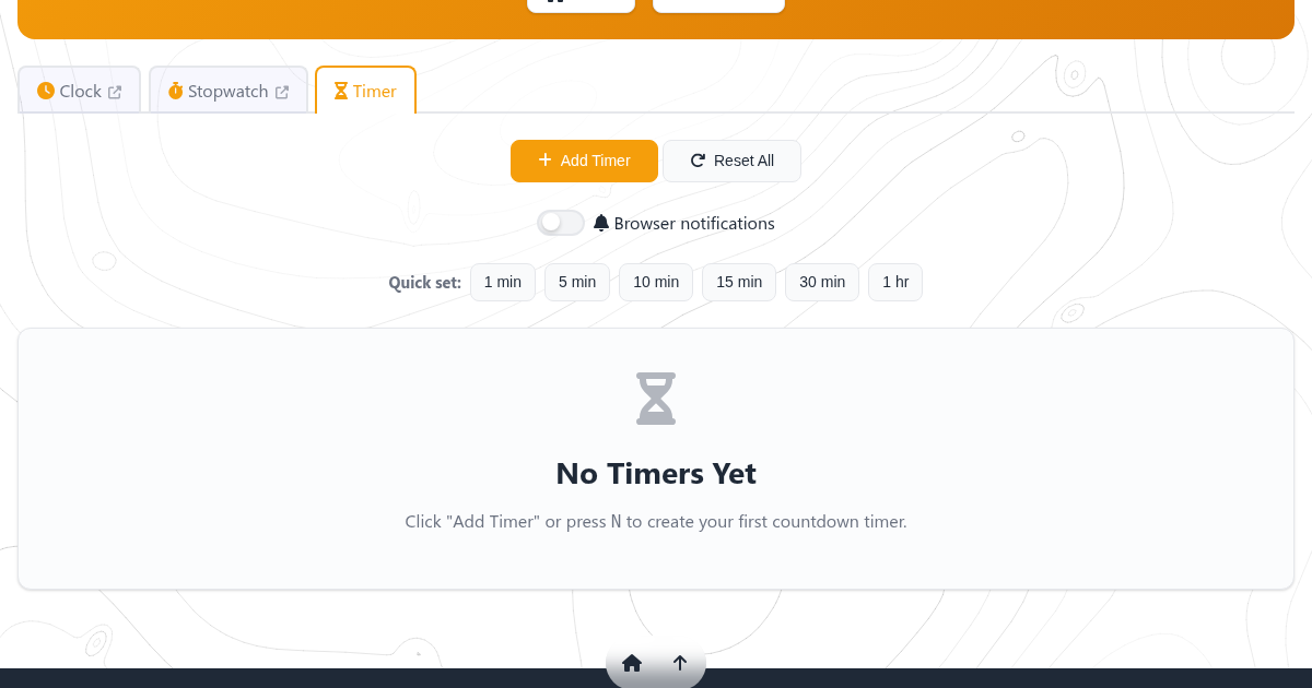 The Timer lets you set a countdown for any duration. Need a 25-minute Pomodoro session? A 10-minute break? A 3-minute egg timer? Just set the time and let it count down.