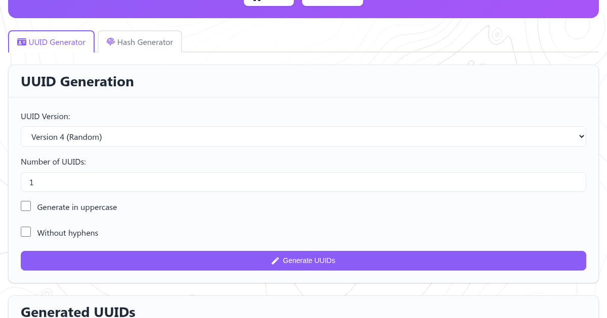 - Open the UUID/Hash Forge page